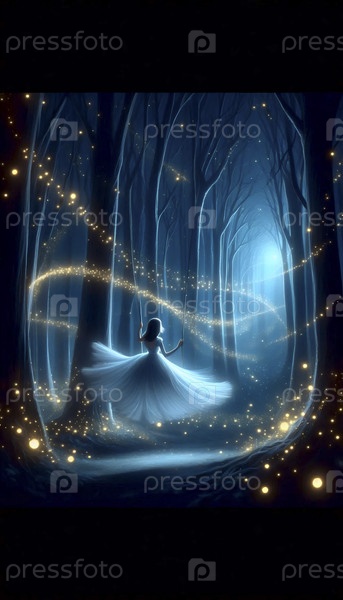 Светящийся качели, установленный в темном лесу с факелами, Ai generated image