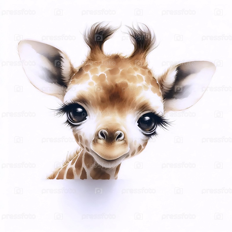 Красивый жираф акварельный художественный печат, Ai generated image