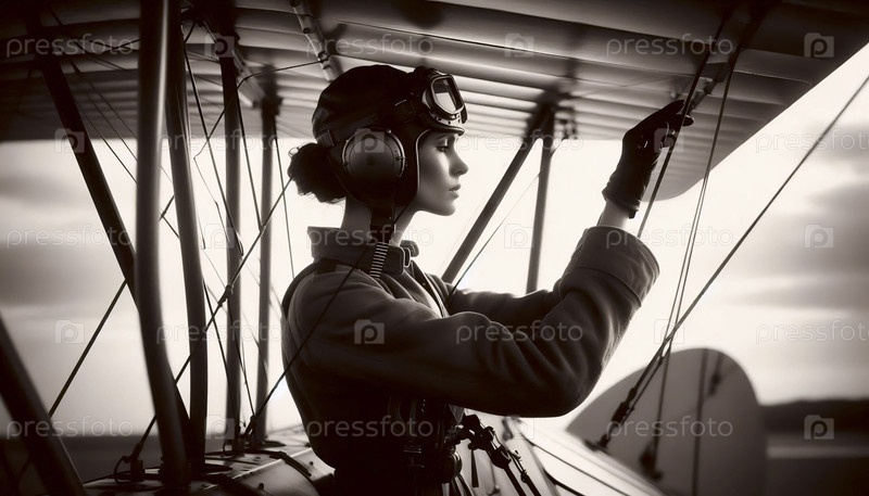 Профильный снимок пилота, проверяющего самолет, Ai создал изображение