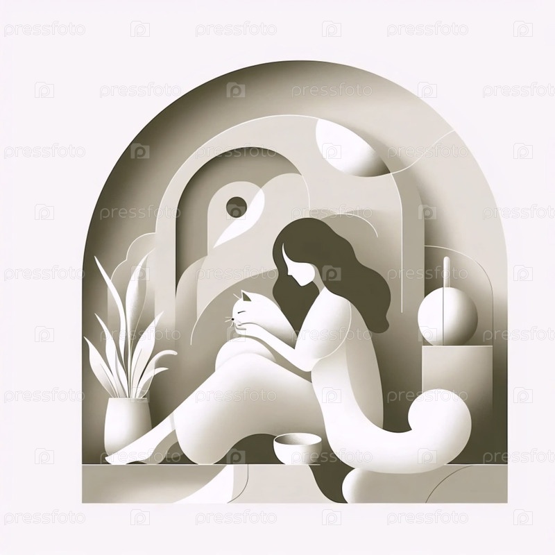 Предназначенный принт отношений кошки и владельца, Ai generated image