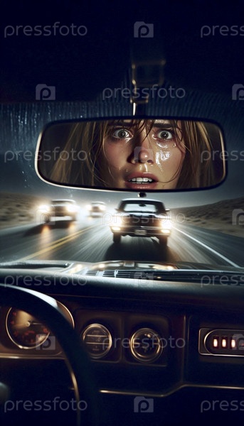 Зеркало заднего вида сцены преследования вблизи, Ai generated image