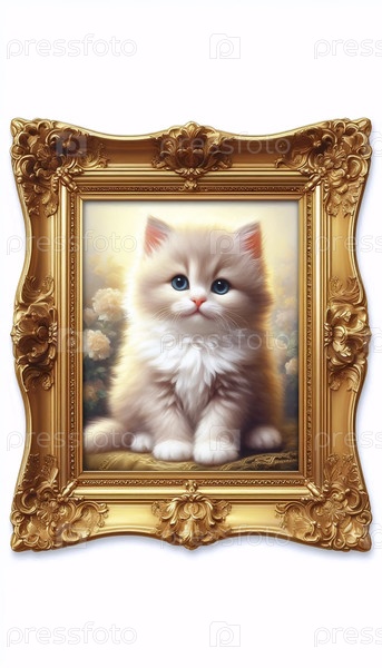 Миниатюрная масляная живопись Милая кошка в золотой раме, A Ai generated image