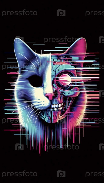 Портрет киборговой кошки, созданный с помощью glitch-art, Ai generated image