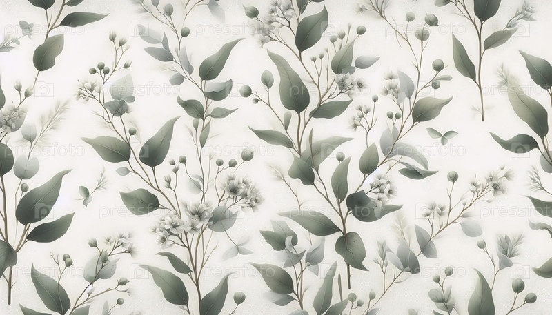 Сельфийский зеленый цветочный бесшовный рисунок, Ai generated image