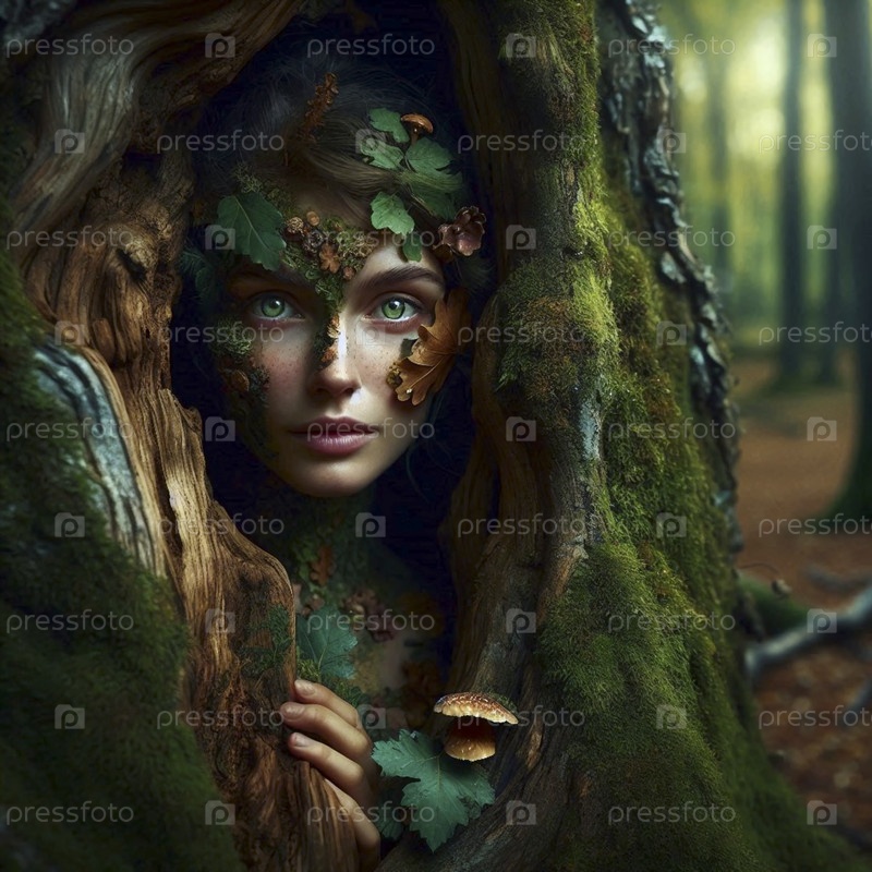 Лесной дух, скрывающийся на древнем дереве, Ай создал изображение