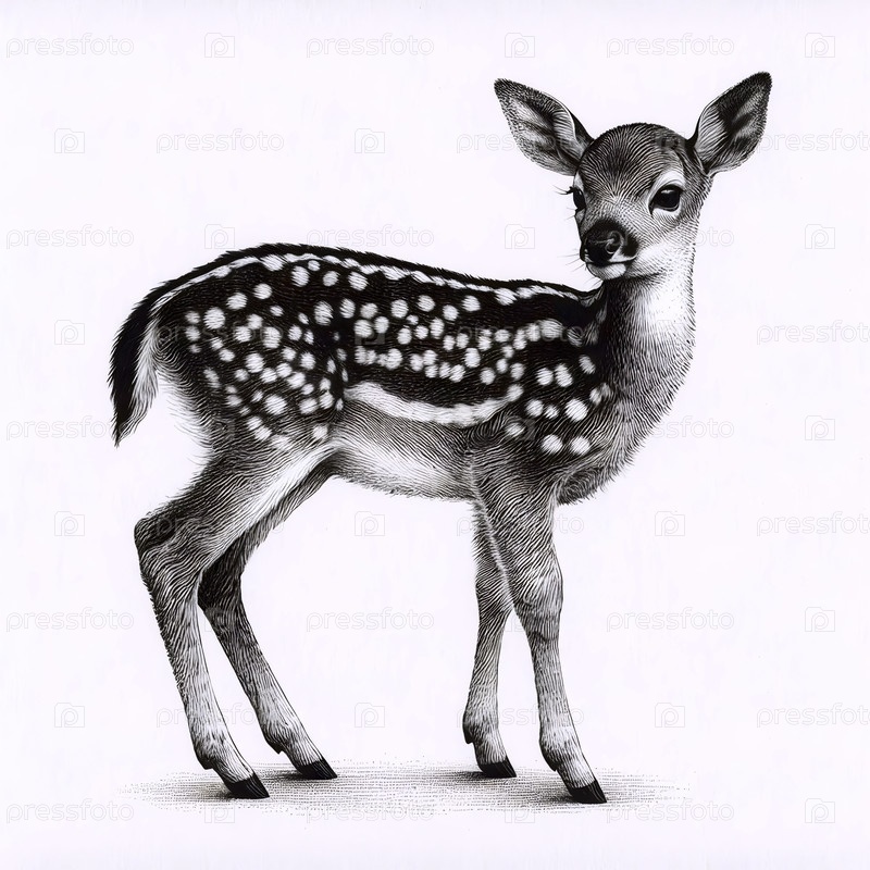 Fawn ink drawing art print, Ai generated image A Аи создал изображение с помощью чернил