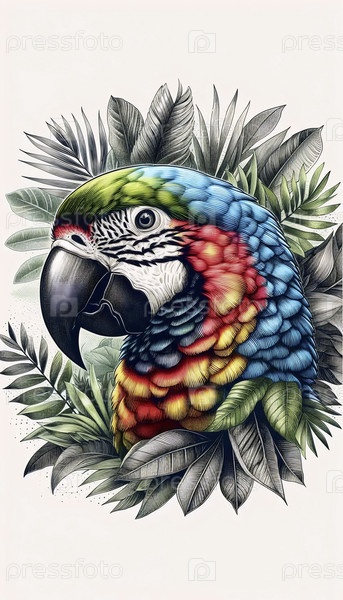 Цветный чернил попугай, рисующий художественную печать, Ai generated image