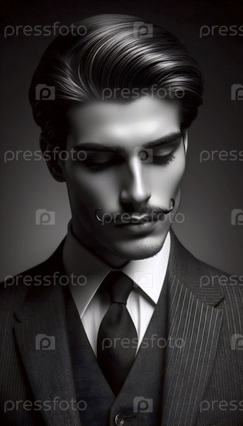 Портрет с закрытыми глазами, идеальная линия усов, Ai generated image