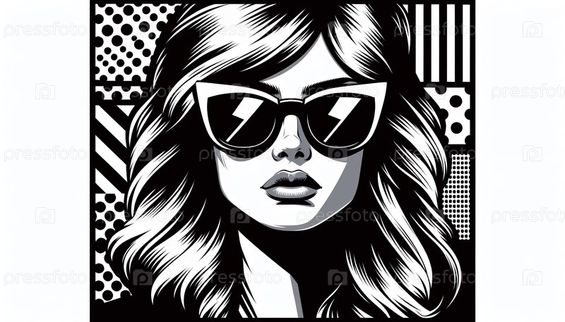 Винтажный портрет солнцезащитных очков поп-арта, Ai generated image