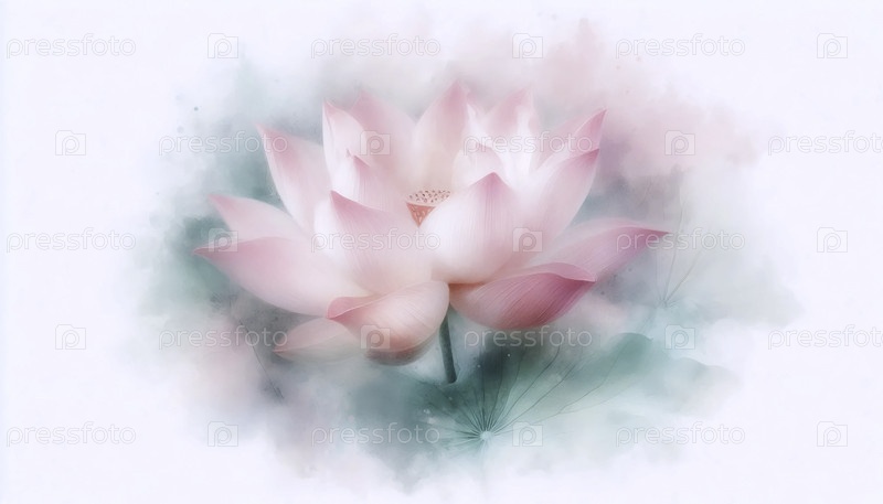 Фотографическая печать в акварели розового лотоса, Ai generated image