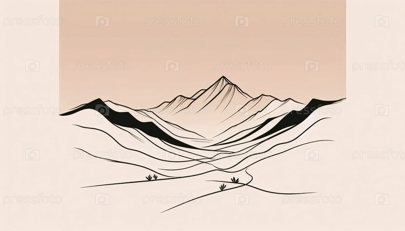 Минималистское линейное искусство горного хребта, Ai generated image