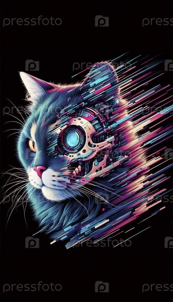Портрет киборговой кошки, созданный с помощью glitch-art, Ai generated image