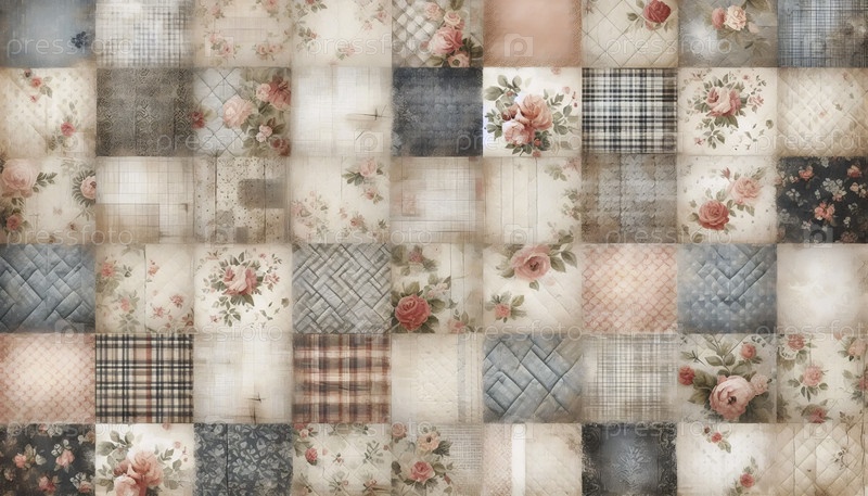 A vintage shabby chic quilting patchwork seamless pattern, Ai generated image (Ай создал изображение с помощью пачворка без швов)