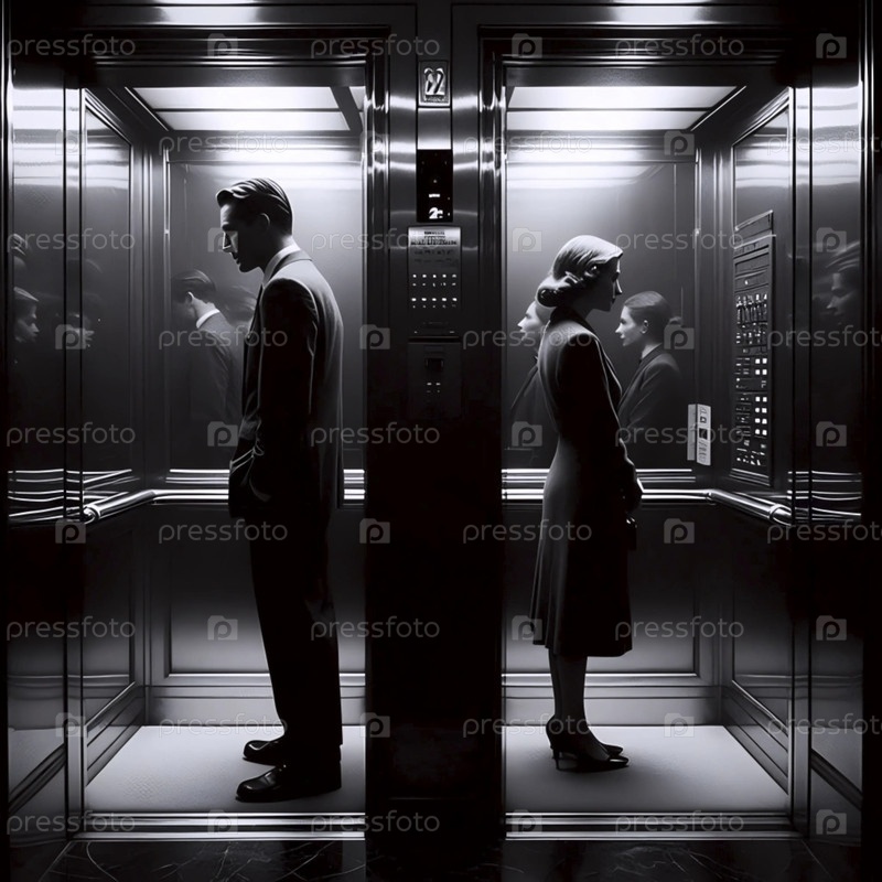 Встреча в зеркале лифта, Ai generated image