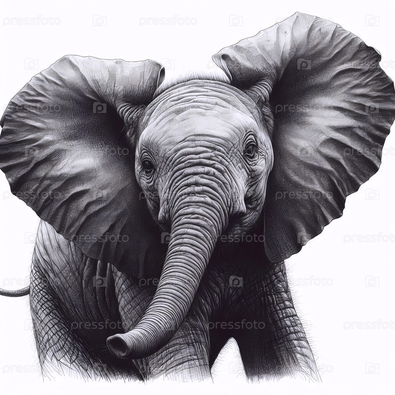 слон с поднятым туловищем чернила рисунок