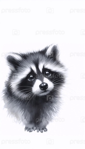 Cute Raccoon акварельный художественный печат, Ai generated A image
