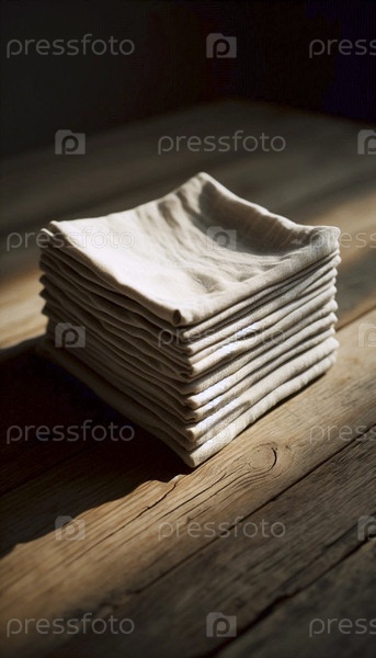 Куча макетов сырой льняной салфетки на изношенном деревянном столе, Ai generated image