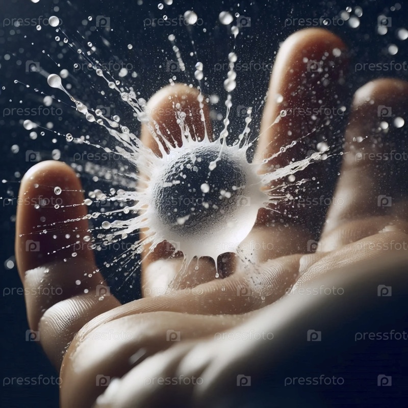 Макросъемка, сфокусированная на распылительном рисунке одной капли пота, Ai создала изображение