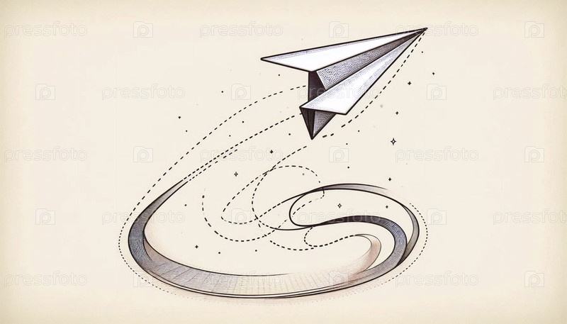 Бумажный самолет в полете чернила рисование арт-принт, Ai A generated image