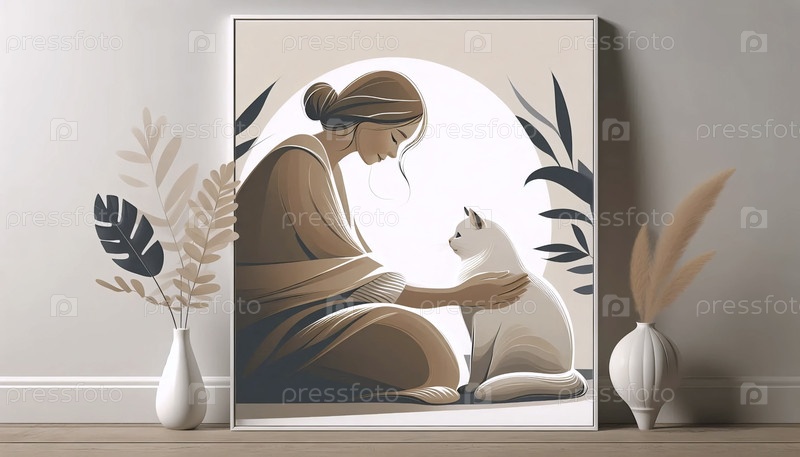 Предназначенный принт отношений кошки и владельца, Ai generated image