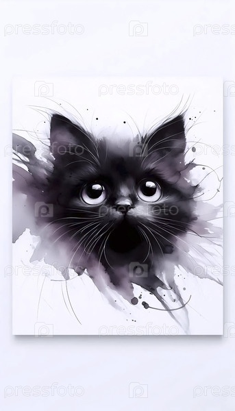 Минимализм Красивый черный кошачий принт, Ai generated image A
