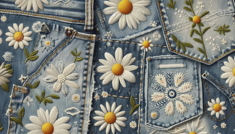 джинсы маргаритки цветочный мотив