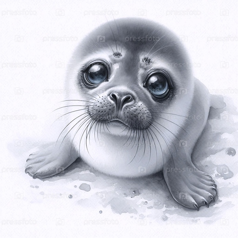 Cute Seal Pup акварельный арт-принт, Ai A generated image