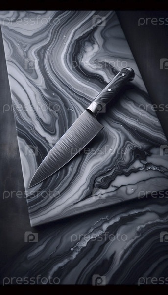 Мокет ножа повара из полированной стали на бурно-серой мраморной поверхности, Ai generated image