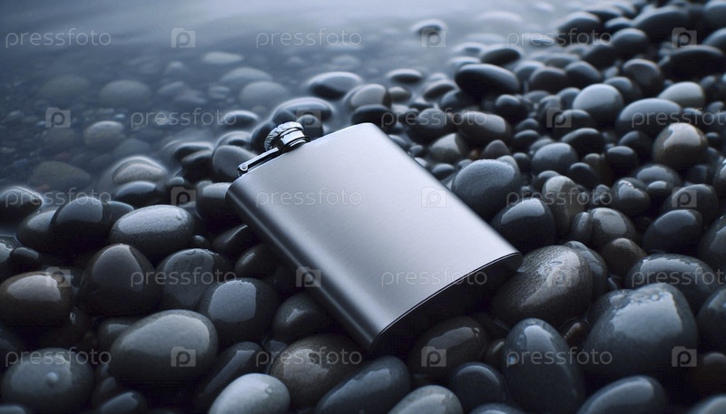 Мокет бутылки из нержавеющей стали на гранитном пляже, Ai generated image