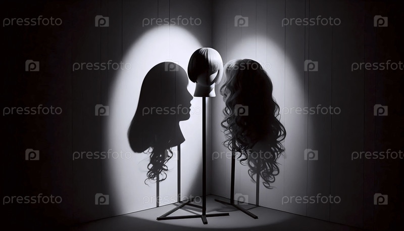 Тени двух разных париков выложены на стене, Ai generated image