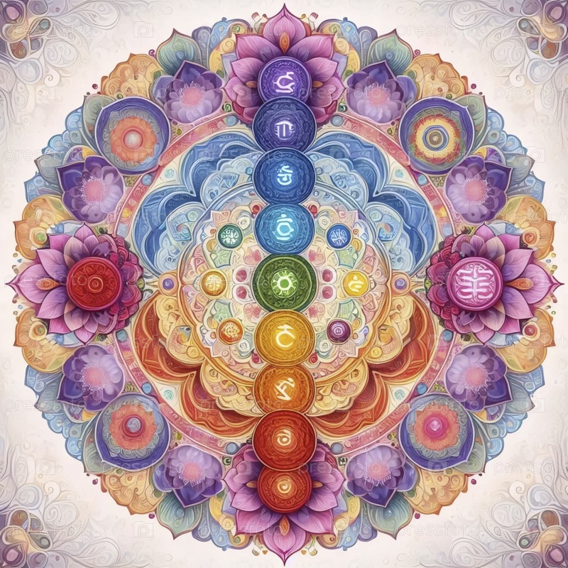 Мандала с символами чакры, Ai generated image