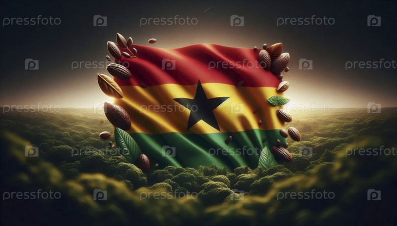 Гаанский флаг в золотой истории и кентской ткани, Ai generated image