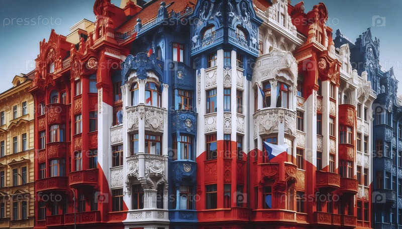 Чешский флаг в архитектуре арт-деко, Ai generated image A