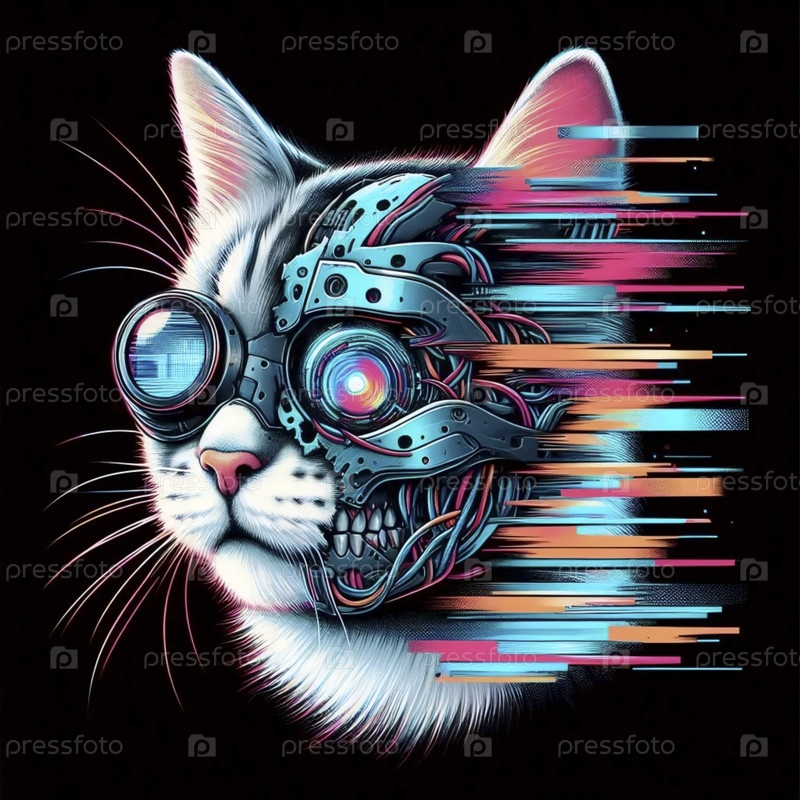 Портрет киборговой кошки, созданный с помощью glitch-art, Ai generated image