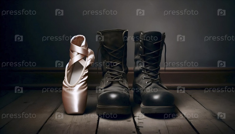 Балетные ботинки рядом с ортопедическими сапогами, Ai generated image