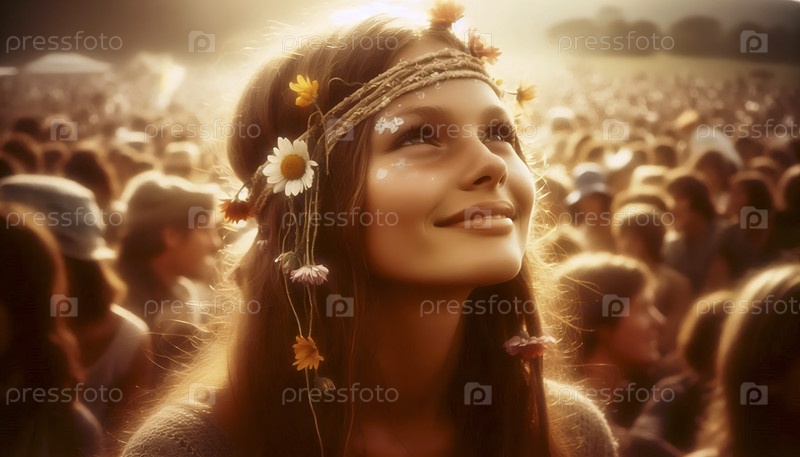 Хиппи-девушка на Вудстоке, Ai generated image A