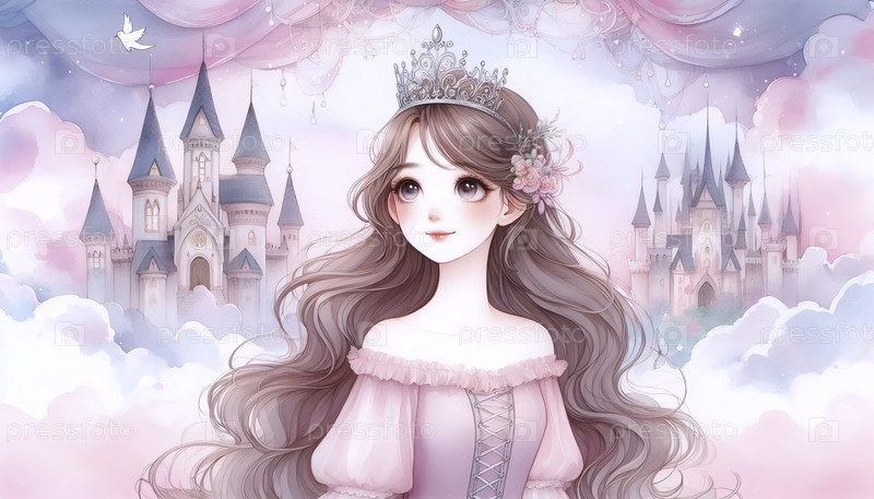 Застенчивая принцесса с акварельным художественным оттиском Crown, Ai A generated image