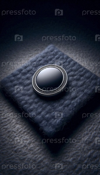 Круглый эмалированный макет булавки с обычной металлической границей, размещенная на шерстяной подушке, Ai generated image