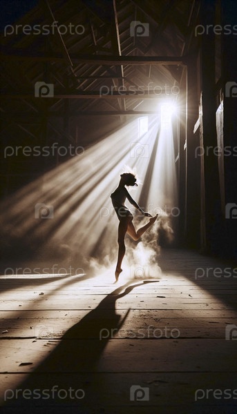 Анонимный танцор в солнечной пыльной студии, захваченная размытым движением, Ай создала изображение