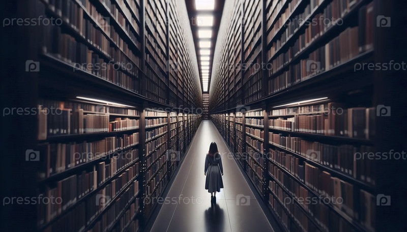 Широкий снимок библиотекаря, исчезающего в стеках, Ай создал изображение
