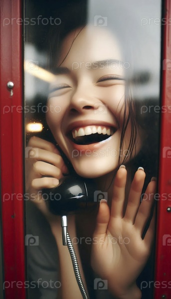 Девушка смеется в телефонной будке, Ai generated image A
