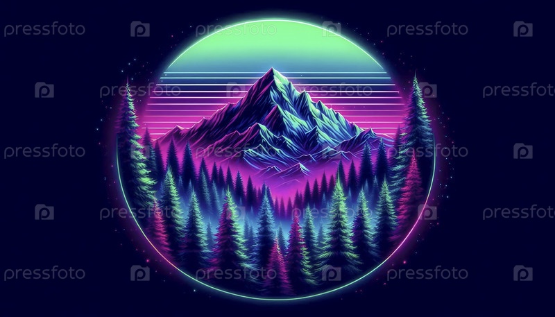 Постер цифровых неонных пейзажных произведений искусства, Ai generated image A