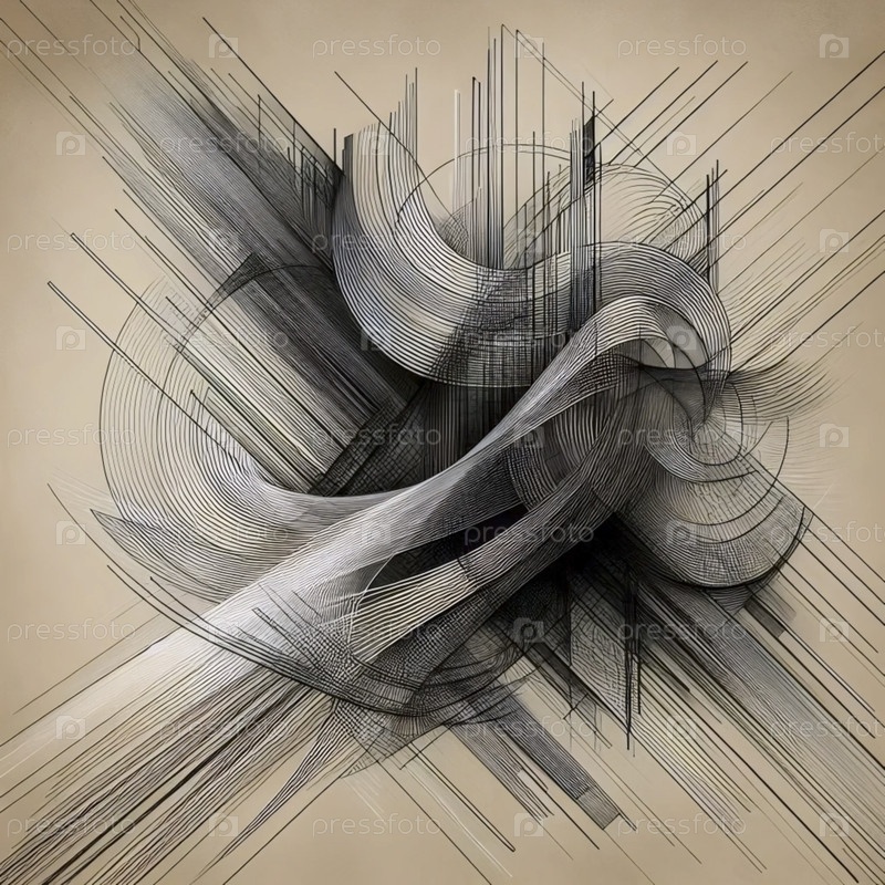 Минималистическое черно-белое абстрактное произведение искусства, Ai generated image