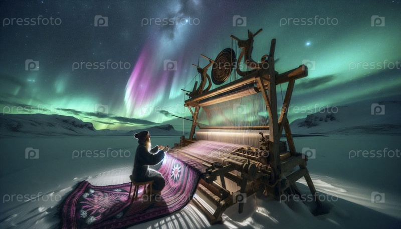 Женщина, плетящая гобелен северного сияния, Ай создала изображение
