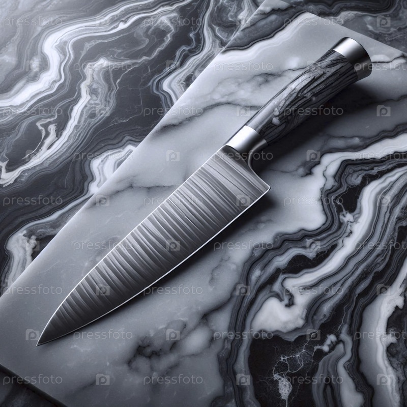 Мокет ножа повара из полированной стали на бурно-серой мраморной поверхности, Ai generated image