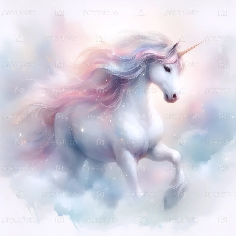 Единорог в технике акварели, Ai generated image