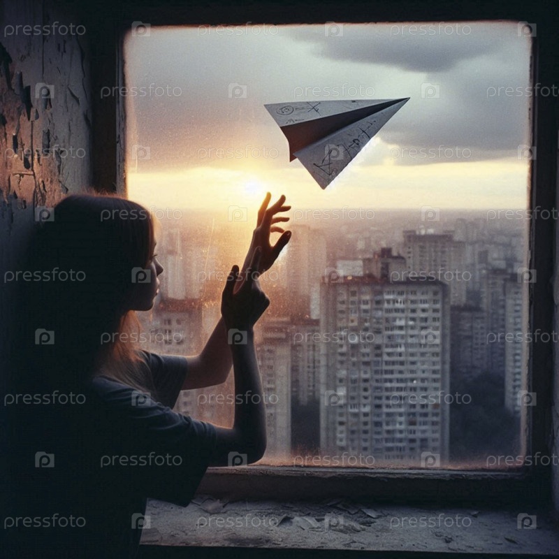 Ребенок, отправляющий сообщение с помощью бумажного самолета, Ай создал изображение