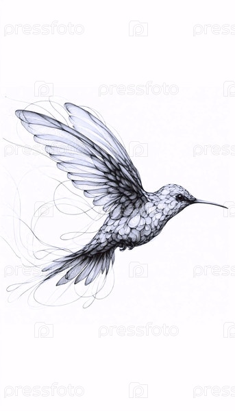 деликатный чернильный рисунок колибри