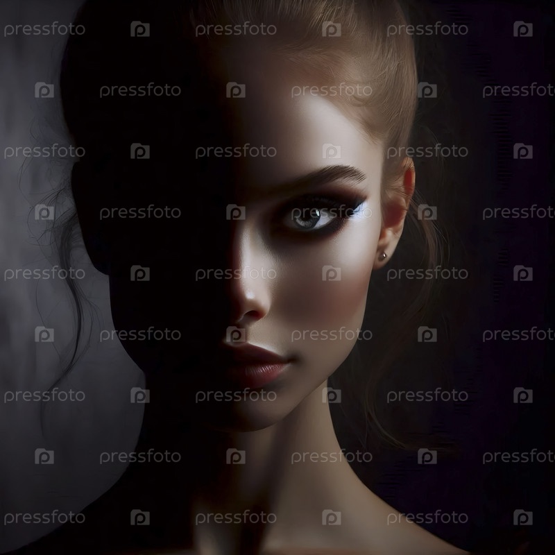 Трехчетверточный портрет, освещенный капризным классическим освещением Рембрандта, Ai generated image