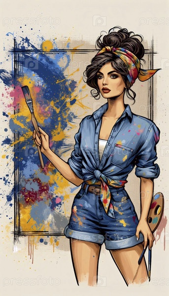 Девушка-художница, рисующая большое полотно с смелыми штрихами, Ai generated image